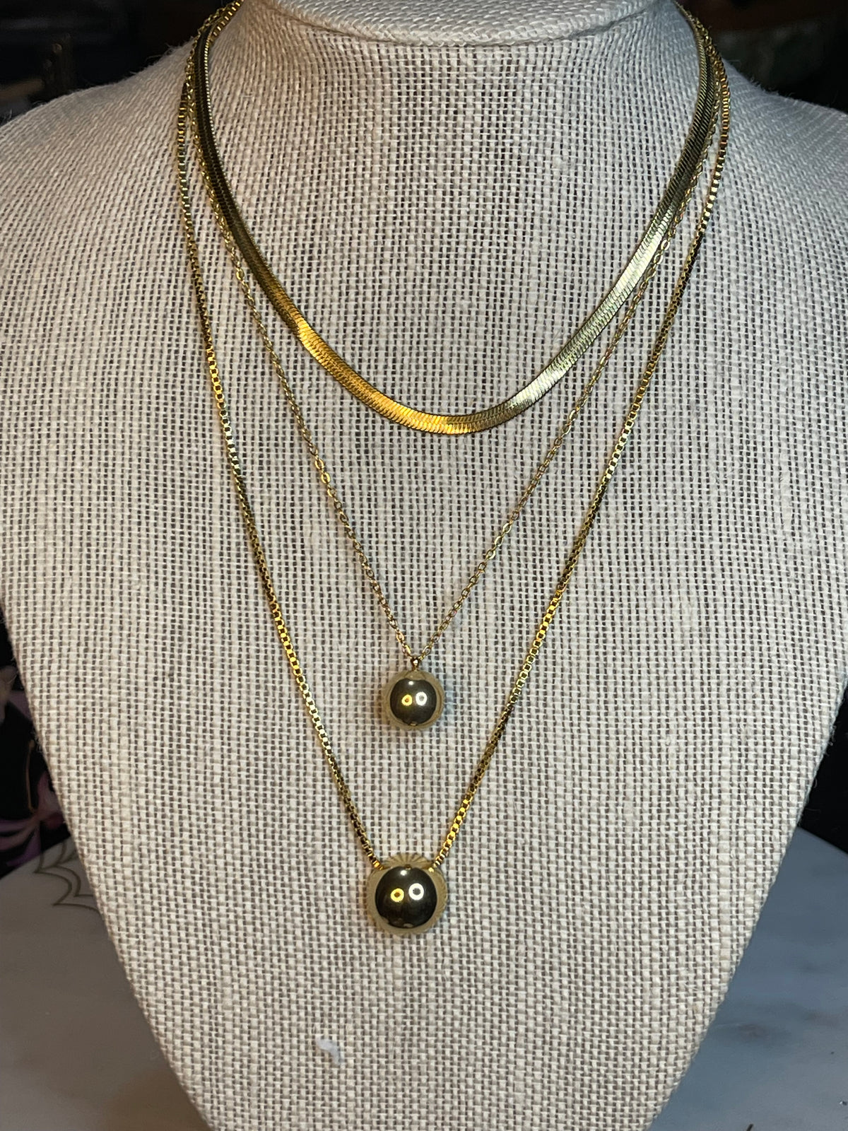 Destaca con este collar de tres capas en acero inoxidable dorado, diseñado para quienes se atreven a brillar con estilo propio. Su acabado vibrante y resistente añade un toque audaz y sofisticado que enmarca cualquier outfit, reflejando confianza y elegancia en cada detalle. Perfecto para quienes no temen combinar fuerza y glamour en una sola pieza.