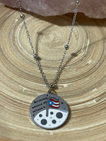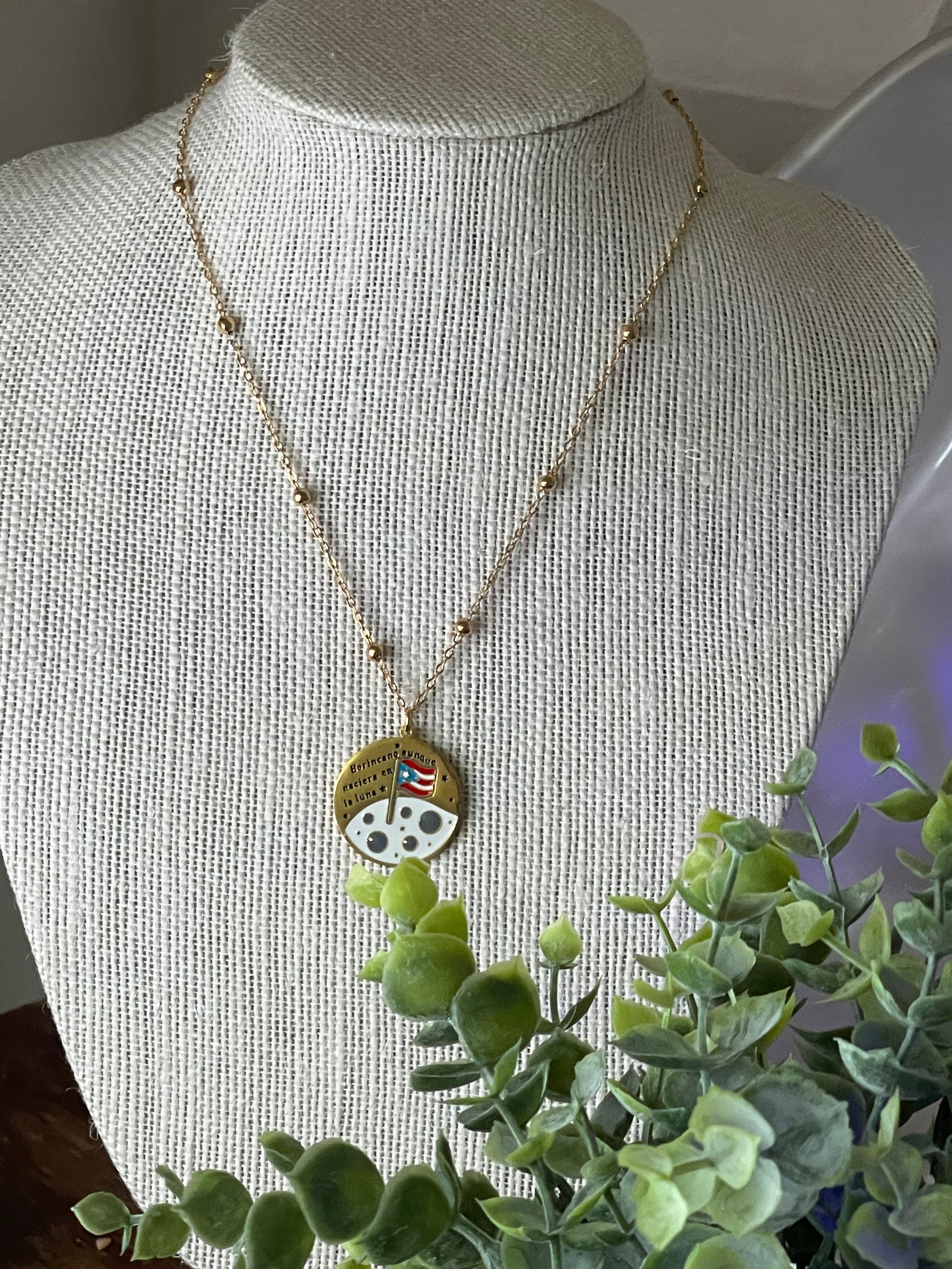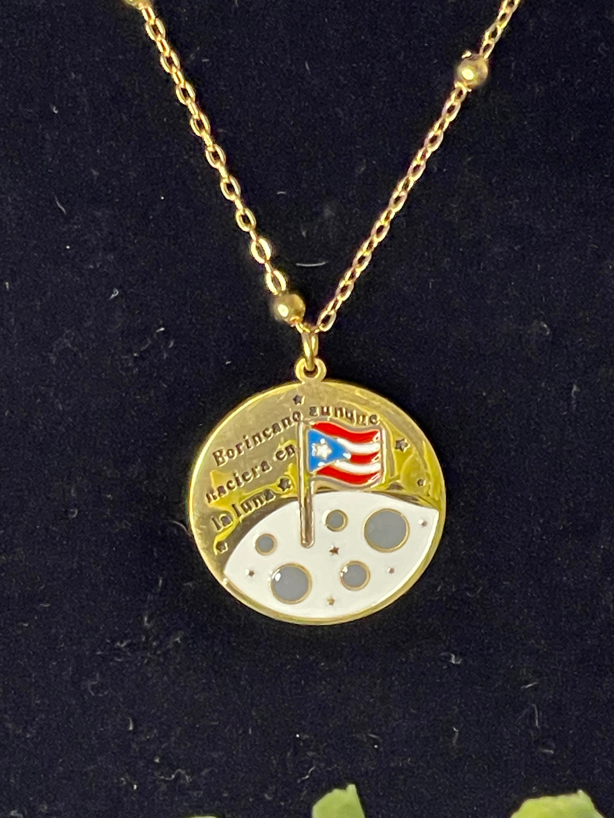 Este collar de acero inoxidable de 18" combina elegancia y orgullo con un diseño que incluye la bandera de Puerto Rico acompañada de la frase "Boricua aunque naciera en la luna". Su extensor de 2" permite un ajuste perfecto para cualquier ocasión, ofreciendo comodidad sin sacrificar estilo ni significado cultural. Ideal para quienes desean llevar su identidad con sofisticación.