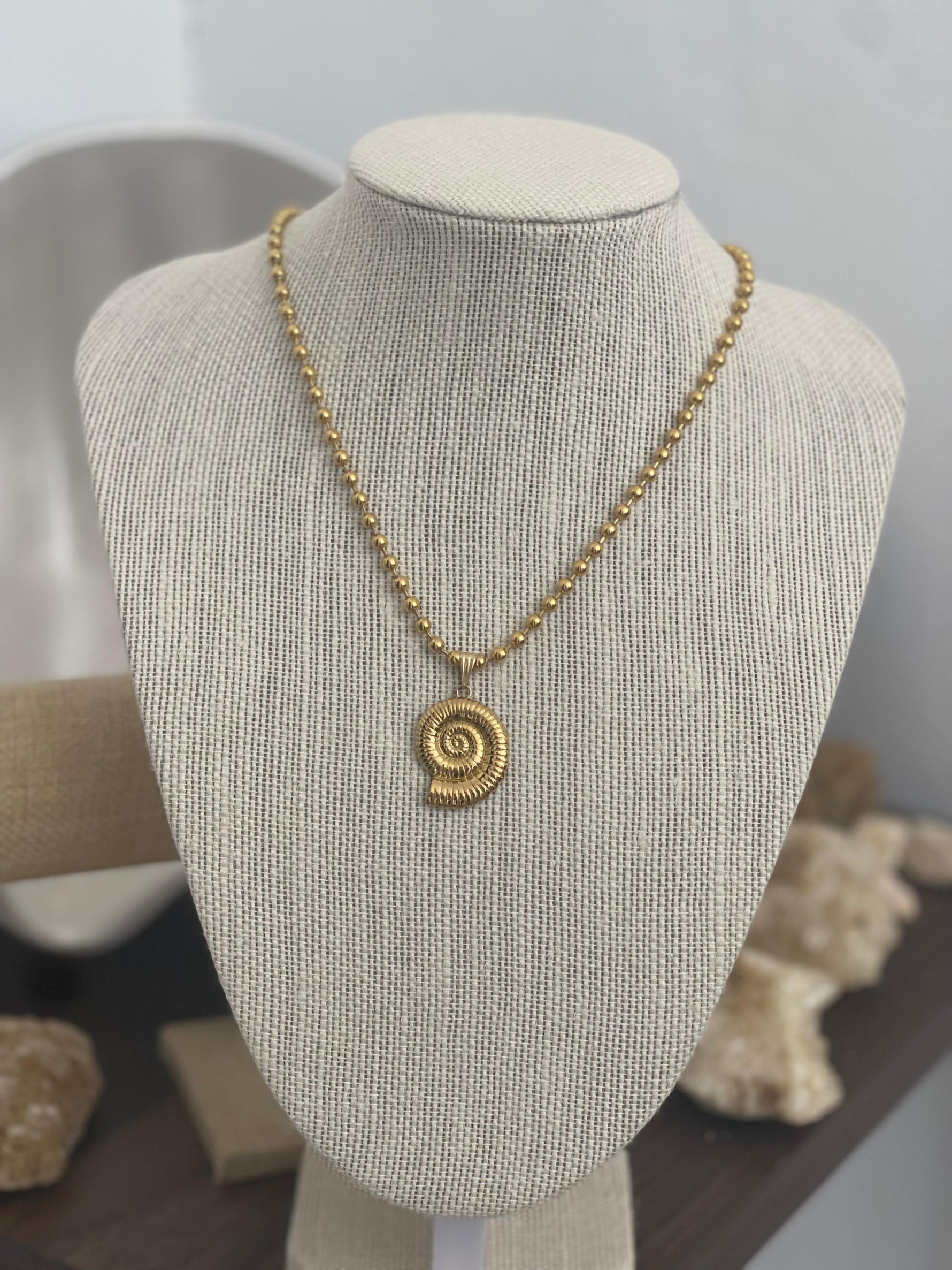 Este collar presenta una cadena militar combinada con un colgante en forma de caracol, ambos elaborados en acero inoxidable resistente. Su diseño delicado pero duradero ofrece un equilibrio perfecto entre sofisticación y robustez, ideal para quienes buscan un accesorio elegante y contemporáneo que resista el uso diario. Un detalle sutil que aporta personalidad y estilo a cualquier conjunto.