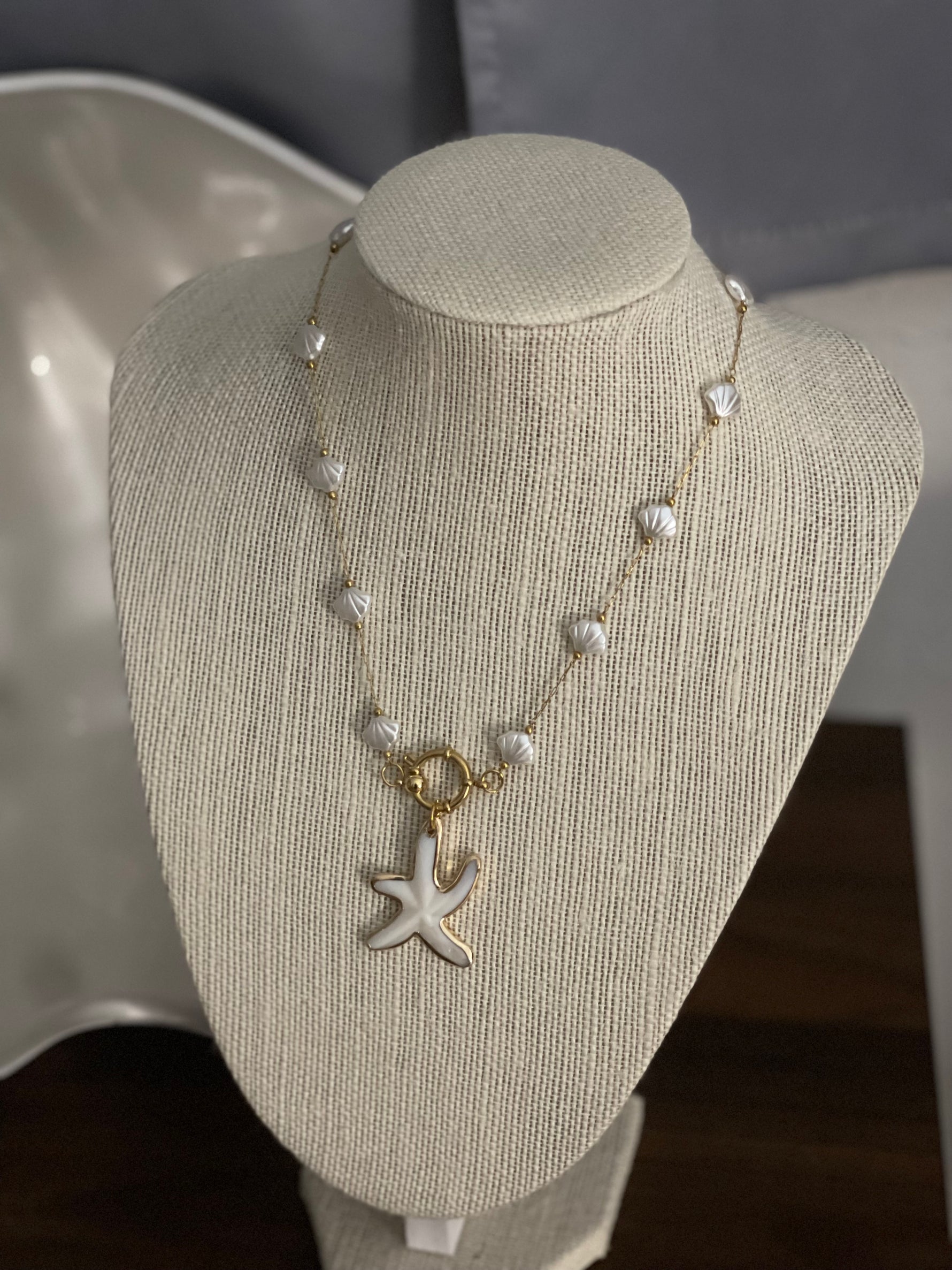 Descubra la elegancia marina con esta pieza que combina delicados corales y una estrella de mar en blanco con detalles dorados. Este diseño evoca la serenidad del océano, aportando un toque sofisticado y natural a cualquier atuendo. Perfecto para quienes valoran la belleza sutil y la inspiración marina en sus accesorios.