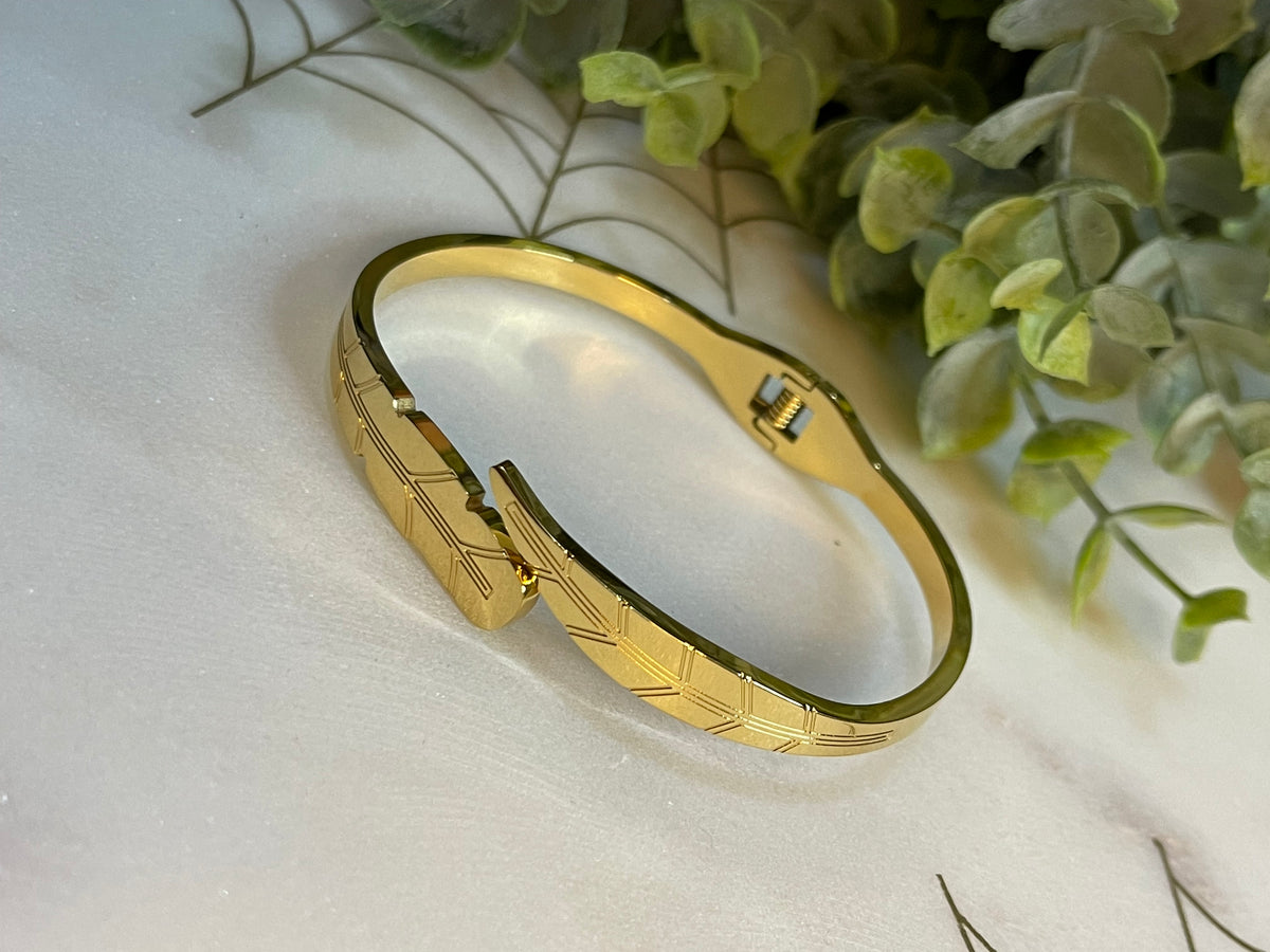 La pulsera Seraphina en acero inoxidable dorado combina elegancia y durabilidad. Su acabado brillante añade un toque sofisticado que realza cualquier atuendo, perfecta para ocasiones especiales o el uso diario. Resistente al desgaste, mantiene su belleza con el tiempo, reflejando un estilo refinado y contemporáneo.